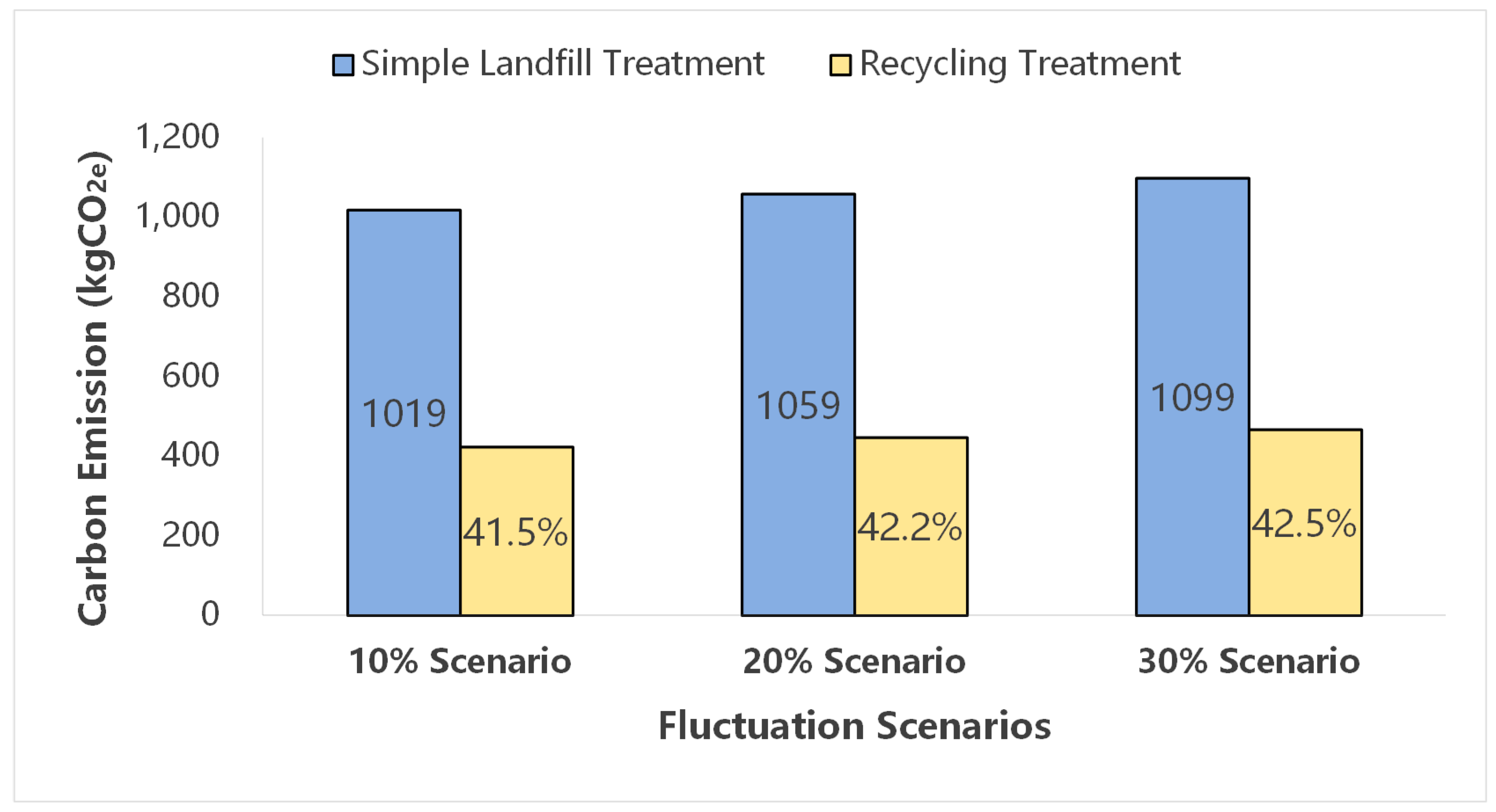 5.2.4. Carbon Emissions During the Construction Waste Treatment and Recycling Stage