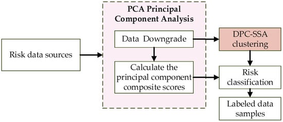 High-dimensional data are extracted using PCA, and the DPC-SSA algorithm is applied for adaptive clustering of the reduced-dimensional data. This result, combined with integrated principal component scores, classifies the clusters into risk levels and labels the risk data.