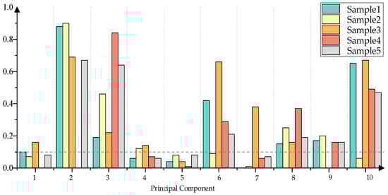 - Based on the set cumulative contribution rate, select the top m eigenvalues and their corresponding eigenvectors , where the eigenvectors form the loading coefficient matrix. The extracted m principal components are denoted as :