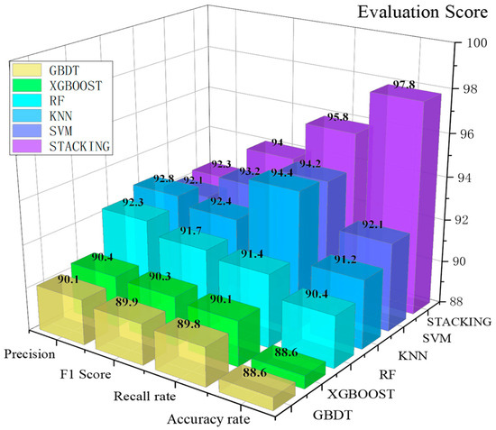 The performance of the stacking model is evaluated using the confusion matrix, accuracy (A), recall (R), precision (P), and F1 score. The confusion matrix visually represents the model’s performance across categories, as shown in Table 1.