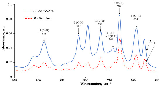 Infrared spectra of the fr. ≤ 200 °C and the obtained gasoline, in the interval 950–650 cm−1.