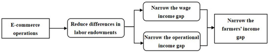 EC provides inclusive non-agricultural employment opportunities for low-income farmers such as the rural older labor force and the female labor force, so that they can obtain wage income through part-time employment and narrow the income gap. In the digital economy model, the production and operation process can be broken down into a large number of “de-skilled” tasks by digital technology [31]. The non-agricultural employment generated by EC can be accessed by farmers with lower skill levels, compensating for the skill deficits of elderly and female farmers, diminishing differences in labor endowment among farmers, and narrowing the wage income gap. The EC sector exhibits significant flexibility, transcending the limitations of time and location [32], and can realize nearby employment, and the physical and intellectual requirements for completing work tasks are not high. These attributes align more closely with the work requirements of the older and female labor forces, diminishing the differences in health, physical strength, and intelligence among farmers, hence reducing the FIG. Thus, we propose Hypothesis 2: