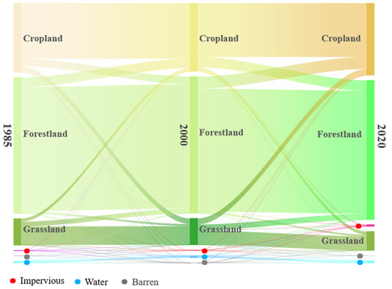 | Land Use Type | 1985–1995 | 1995–2005 | 2005–2015 | 2015–2020 | ||||