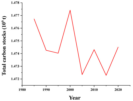 3.1. Spatiotemporal Variation in Carbon Storage and Its Response to Land Use Change