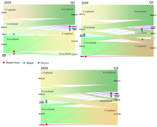 | Land Use Type | Cropland | Forest | Grassland | Water | Impervious | Barren |