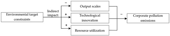 Environmental target constraints have completely transformed the utility function of local bureaucrats, impacting their efforts in environmental supervision and the allocation of various resources [22,23]. In this subsection, this paper provides descriptive evidence for the link between ETCs and pollutant discharges. Specifically, this paper elucidates the underlying mechanisms behind the relationship, including reducing output scales, enhancing corporate innovation, and optimizing resource utilization. Figure 1 illustrates these transmission mechanisms.