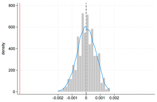 While the main findings suggest that ETCs significantly reduce pollution discharges in manufacturing firms, the observed effect may be potentially influenced by confounding factors that introduce selection bias. To address this concern and ensure robust identification, this paper conducts a placebo test to assess whether the results are primarily driven by omitted variables. Specifically, this paper randomly reassigns treated cities from the full sample and performs 500 bootstrap samplings. Figure 4 plots the kernel density distribution of the estimated coefficients, which cluster around zero and are substantially larger than the baseline estimate. Consequently, it suggests that the main findings are unlikely to be driven by selection bias.