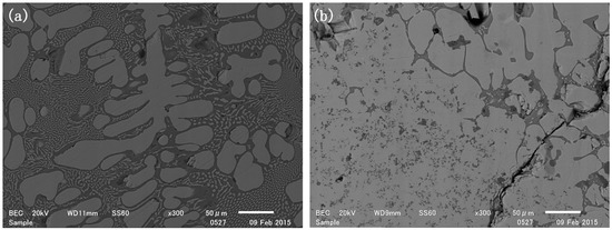 The slag was allowed to react with silicon for 2 h at 1500 °C in an induction furnace under a deoxidized argon atmosphere. After the reaction, the sample was withdrawn from the furnace, quenched in argon gas, and then subjected to metallographic examination and microstructural analysis using a scanning electron microscope (SEM, JSM6510LA, JEOL Ltd., Tokyo, Japan) equipped with an energy dispersive spectrum (EDS) system. The slag phase was mechanically separated from the alloy phase, and its composition was analyzed using inductively coupled plasma atomic emission spectroscopy (ICP-AES, SPS 7700, SII Nano Technology, Chiba, Japan). For ICP-AES sample preparation, 0.1 g of crushed slag was digested in a platinum crucible using 0.5 g of Na2CO3 and 0.5 g of Na2B4O7 at 1000 °C for 20 min. The alkaline-fused sample was then dissolved in a 1:3 HCl/H2O acid solution and immediately analyzed.