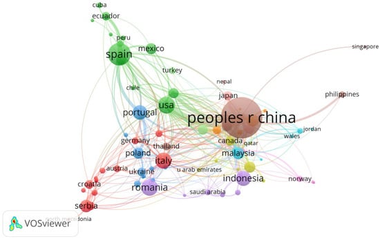 Regarding the geographical distribution of research, China leads significantly, with 640 publications (33.42%), followed by Spain (191 works, 9.97%), the USA (107 works, 5.59%), Romania (101 works, 5.27%), and Italy (94 works, 4.91%). These numbers demonstrate that rural tourism and agritourism are topics of interest not only in Europe but also in Asia and North America, where concerns regarding rural sustainability and economic diversification of agricultural communities are prominent.