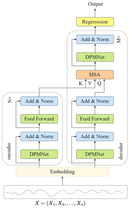 To address the above challenges, we propose a novel Dynamic Pattern Matching Network (DPMNet). This network incorporates a memory module capable of storing and dynamically updating representative features over extended time horizons, enabling the model to perceive long-term temporal variations. Furthermore, we introduce daily and weekly temporal embeddings to encode time-specific features at multiple granularities, thereby enhancing the model’s ability to recognize evolving traffic patterns over different time scales. Based on these mechanisms, we build a complete prediction framework named DPMformer, which integrates node-level dynamic pattern learning, long-term trend modeling, and multi-scale temporal awareness for accurate traffic flow forecasting.