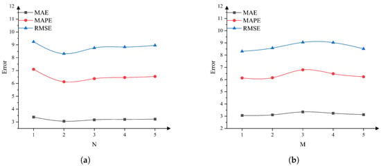 Sensitivity of the model to the number of N and M. (a) Sensitivity of the model to the number of encoders. (b) Sensitivity of the model to the number of decoders.