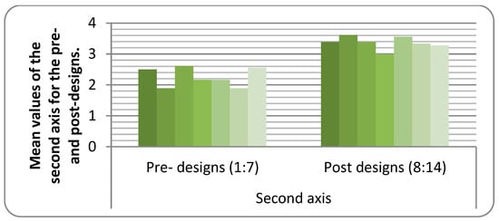 Comparison between the arithmetic mean values of the second axis for the pre-and post-designs.