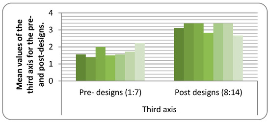 Comparison of the arithmetic mean values of the third axis for the pre- and post-designs.