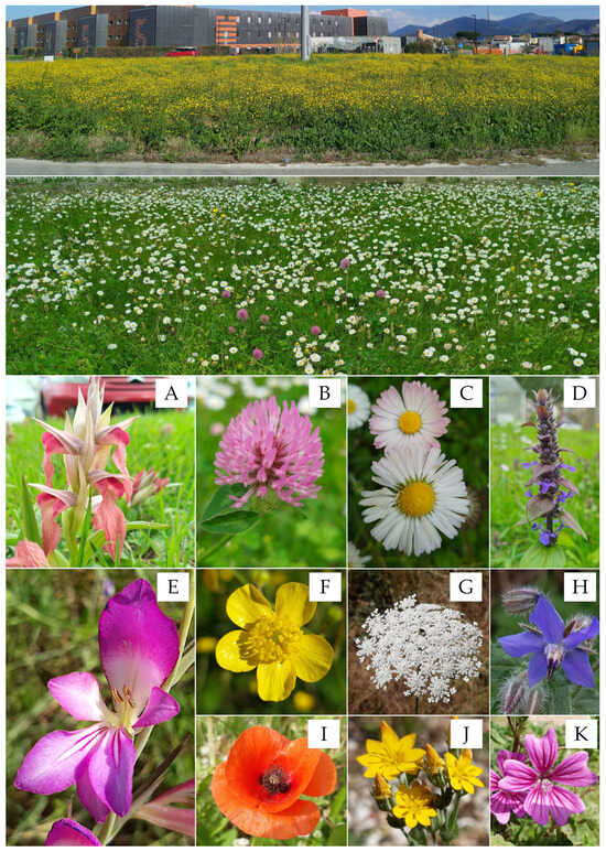 - Bretzel, F.; Vannucchi, F.; Romano, D.; Malorgio, F.; Benvenuti, S.; Pezzarossa, B. Wildflowers: From conserving biodiversity to urban greening—A review. Urban For. Urban Green. 2016, 20, 428–436. [Google Scholar] [CrossRef]