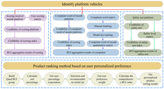 To summarize, this study aims to integrate the knowledge of consumer behavior preferences embedded in rating eWOM, complaint text eWOM, and security test data. Specifically, the credibility of these three types of data will be assessed individually, and the BUI model will be constructed based on the evaluation outcomes. Through this model, the characteristics and information quality of different data sources can be comprehensively considered. Subsequently, personalized product ranking and recommendation algorithms will be developed to enhance the accuracy and effectiveness of automotive product ranking and recommendation, thereby providing stronger support for the development of the automotive industry and aiding consumers’ car purchase decisions.