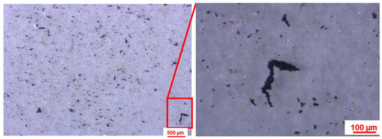TWPs can be distinguished by their dark/black color and cylindrical/elongated fragments with rough surface texture or jagged edges [26,47]. Here, TWPs on the filters were visually inspected using a Stemi 508 stereomicroscope equipped with an Axiocam 105 color digital camera (Carl Zeiss, Jena, Germany). Stereomicroscopic images were taken at 30–95× magnification with LED intensity set between 60 and 66 and a resolution of 1.5 µm (See Figure 2). The images were processed by ImageJ (https://imagej.net/ij/) (NIH-LOCI, University of Wisconsin, Madison, WI, USA) for automated particle counting and sizing as described elsewhere [23]. A light intensity threshold of 200 was used to remove non-dark objects, as bright or colored particles are mostly geogenic, biogenic, or non-TWPs. Because the samples were prepared using a 30 µm screen, only particles >30 µm in size were counted; TWPs smaller than this cutoff are generally difficult to distinguish visually [24].