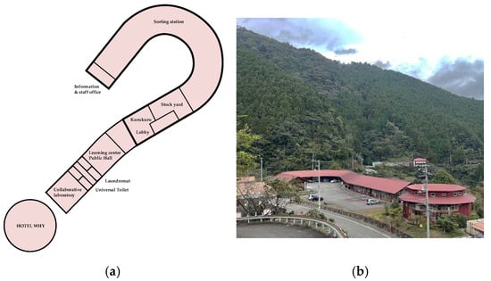 The municipality had formed itself around the zero-waste concept by embodying the principles of ‘reduce, reuse, and recycle’. The Zero Waste Center was located on the site of the former landfill. It featured a sorting station, stockyard, kuru-kuru shop, learning center, public hall, office, collaborative laboratory, laundromat service, restrooms, and hotel accommodation (Figure 3). The design of the co-location reflected the values of the zero-waste community by visualizing the importance of education and communication, revitalizing the community, and enhancing the region. The learning center and public hall had books about zero waste and other sustainable lifestyle topics. A letterpress had printed “WHY?” on consumption-inciting newspapers to reevaluate consumer society. In one of the corners were music equipment and toys made from recycled plastic sorted in Kamikatsu.