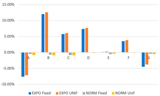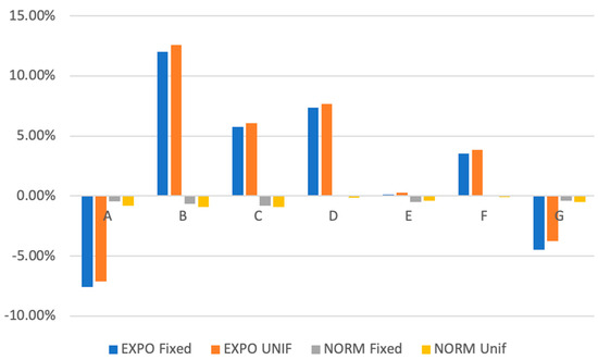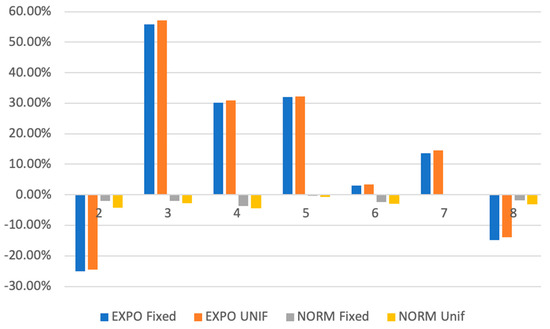 Customer Demand Profiles: We analyzed two distinct customer demand distributions: exponential and normal distributions. The exponential demand was characterized by a mean of 5.5 and coefficient of variation of 100%, while the normal distribution reflected variations with a coefficient of variation of 25%. By incorporating both types of distributions, we aimed to explore how different demand patterns affect system performance under the proposed strategies.