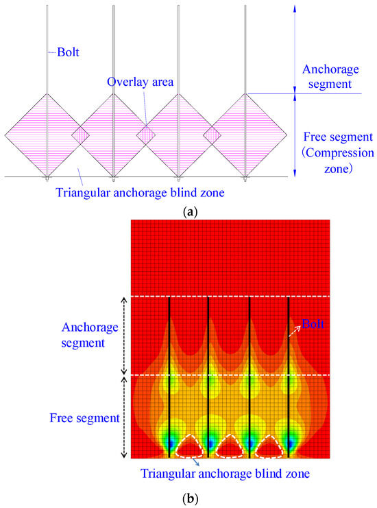 Diagram of anchorage blind zone of prestress bolt: (a) Theoretical concept map and (b) stress contour plots.