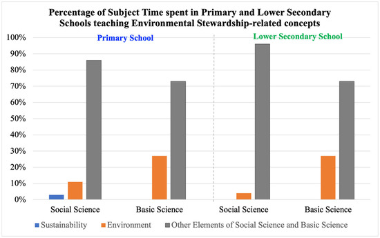 Percentage of total teaching time spent on environmental stewardship, Years 11–13. Source: [29].