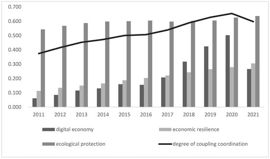 Coupling and Coordinated Development Analysis of Digital Economy, Economic Resilience, and Ecological Protection