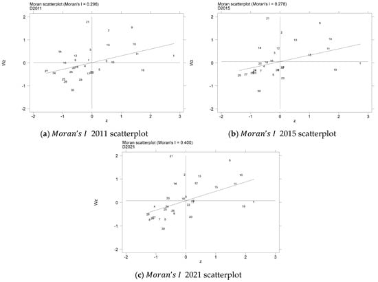 | Year | Moran’s I | Z-Value | Year | Moran’s I | Z-Value |