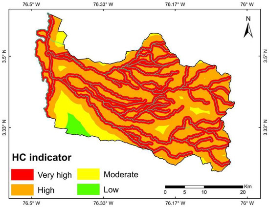 The results of the IIVDC were analyzed using spatial statistics techniques to identify patterns and trends in vulnerability distribution. The findings were validated in comparison with previous research, data from CVC, IGAC, and expert reviews (Supplementary S8 and S9). All data sources can be found in Supplementary S9 (Table S9-8). In the Results section, the term “indicator” is used to refer to the six parameters previously defined in the IIVDC framework. This terminological shift reflects their role as mapped outputs representing normalized and classified spatial indicators of surface water vulnerability.