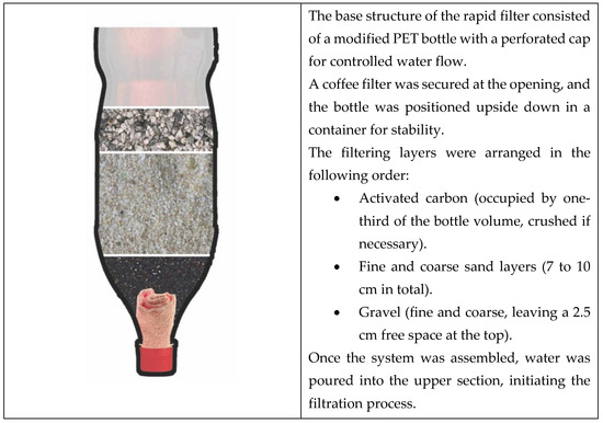 Finally, the clarified water was passed through the filtration unit (Figure 5), following the methodology proposed in [29].
