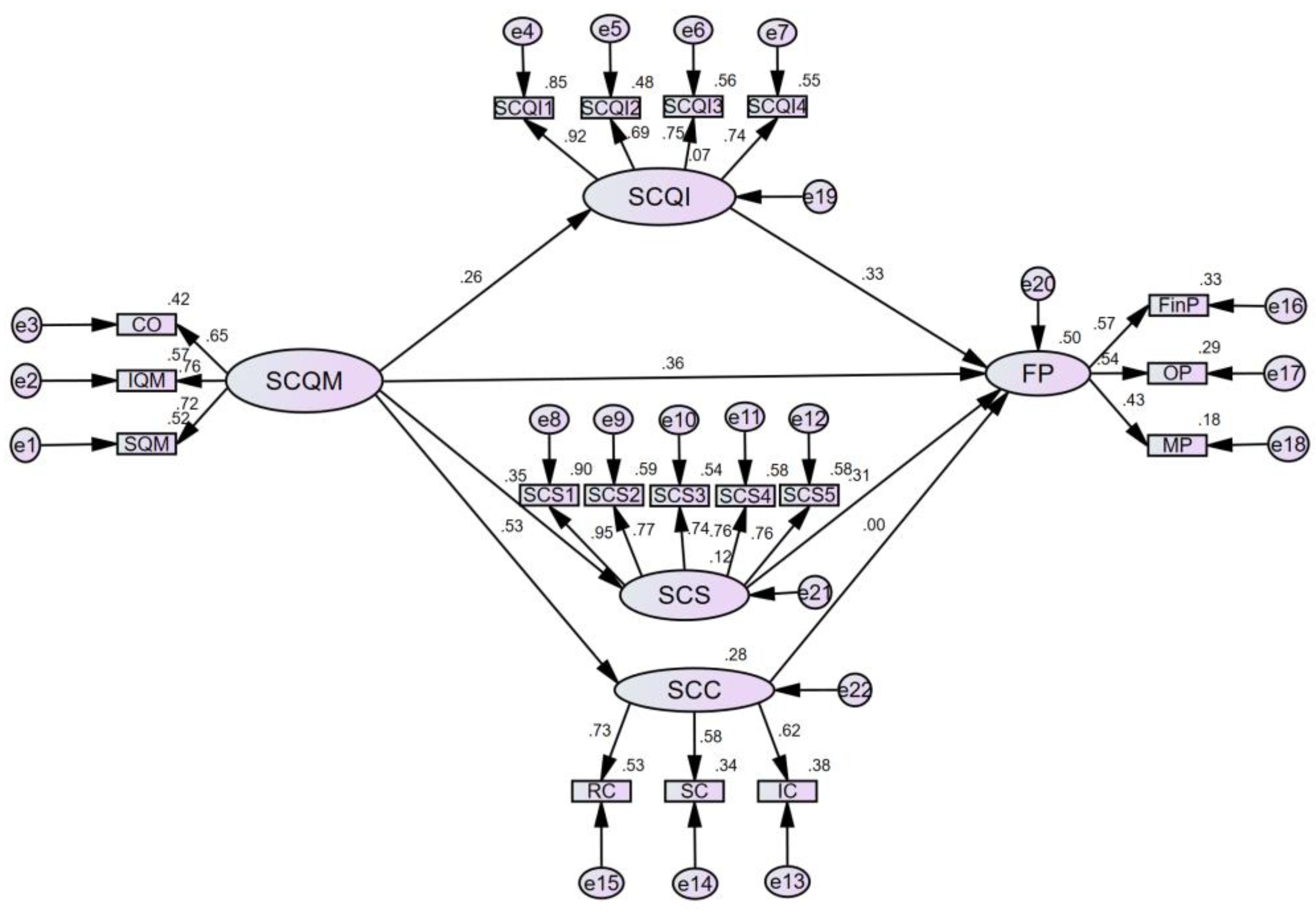 SCQM in manufacturing enterprises exerts a positive influence on FP.