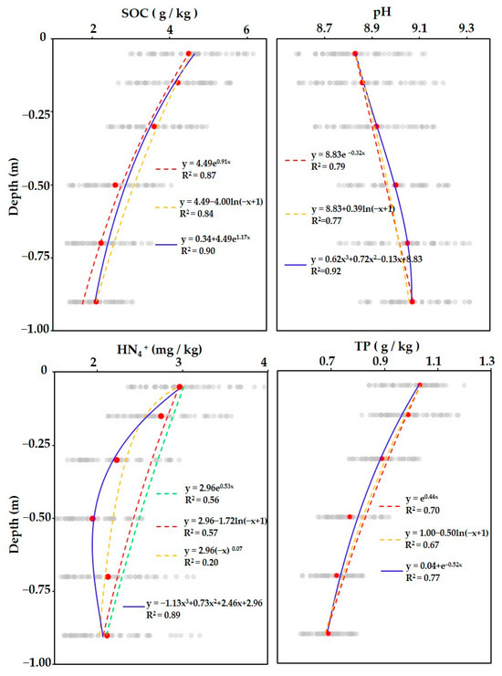 | pH | A + B x depth3 + C x depth2 + D x depth | 0.92 | 0.07 | 0.05 |