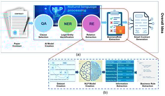 (a) Overall workflow. (b) From relation extraction to business rule extraction process flow.