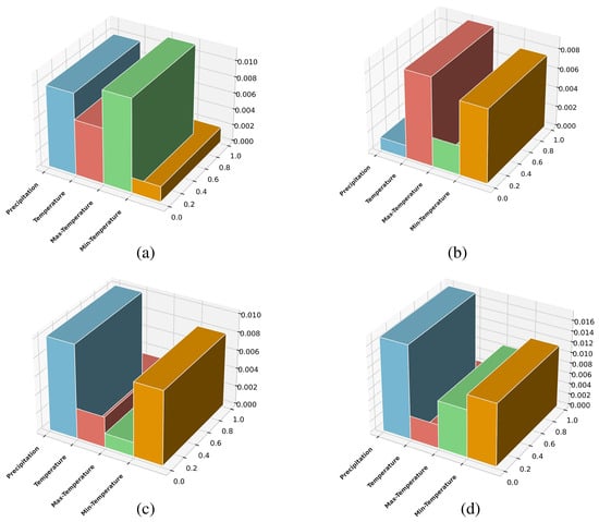 Relative importance of input features in streamflow forecasting using TeaNet. (a) Adityapur, (b) Ghatsila, (c) Jamshedpur, (d) Muri.