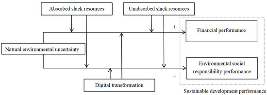 Therefore, this paper expands RBV to deeply explore the changes that occur in the sustainable development performance of enterprises under the multiple resource conditions of slack resources and digital transformation in the face of natural resource constraints caused by natural environmental changes.