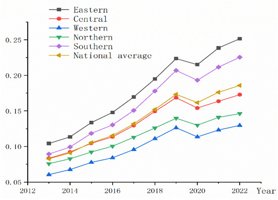 | Southern region | 0.089 | 0.099 | 0.118 | 0.13 | 0.151 | 0.178 | 0.207 | 0.193 | 0.212 | 0.226 |