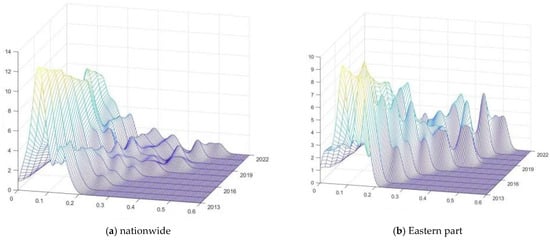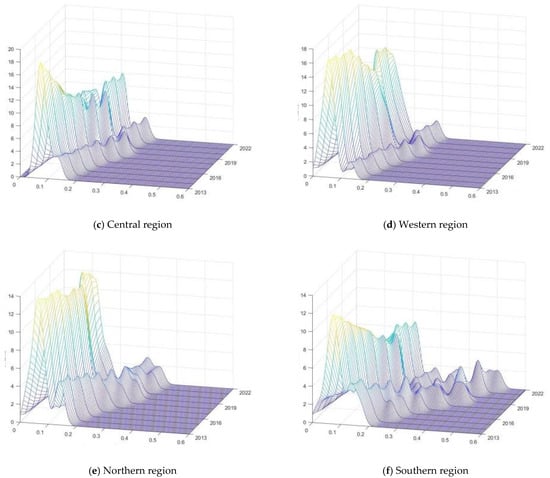 3.2. Analysis of the Characteristics of Dynamic Evolution of the Distribution of Levels of Digital Rural Development in China
