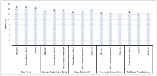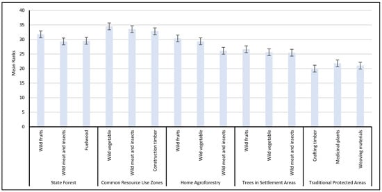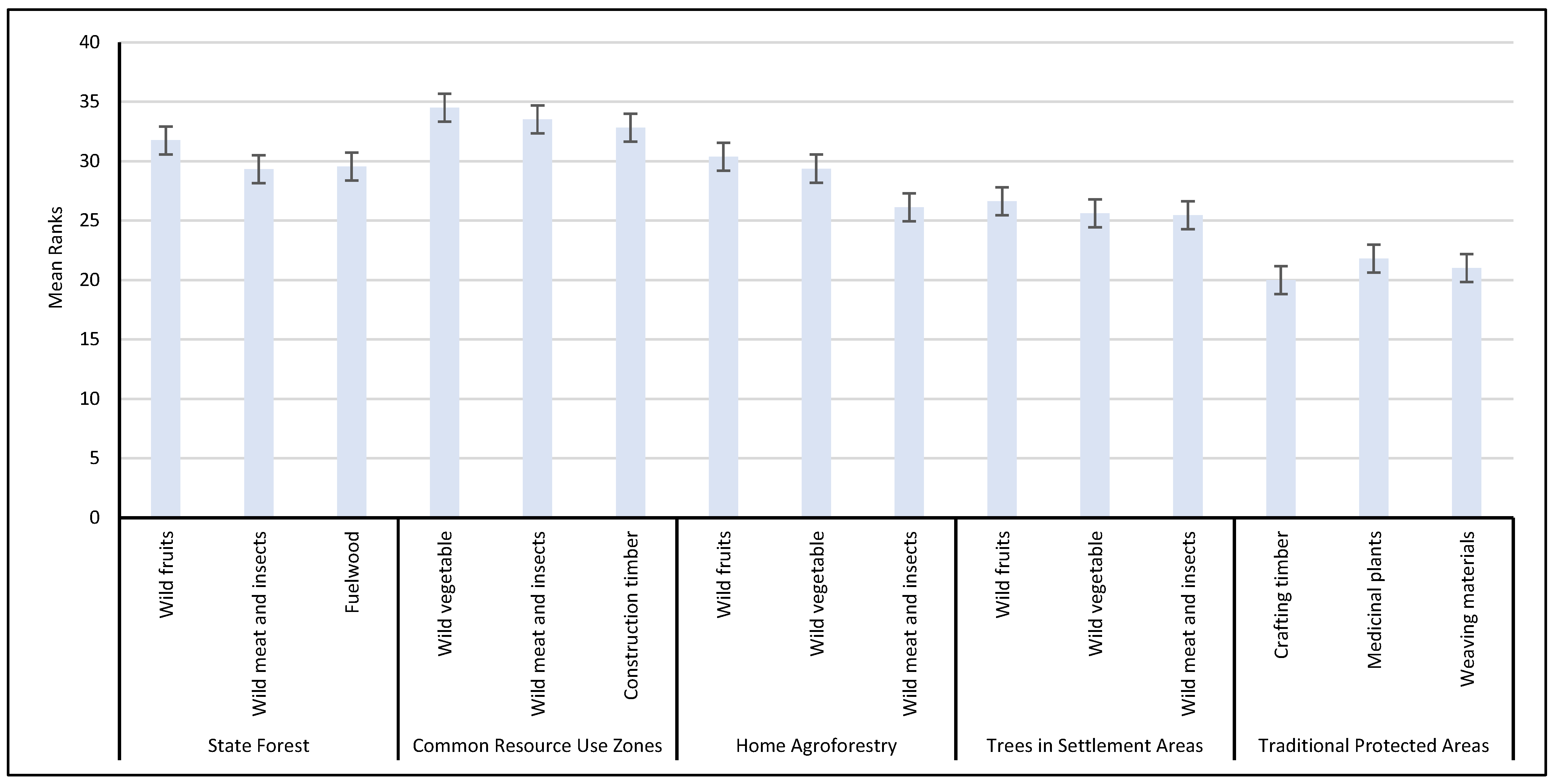 3.2. Provisioning Ecosystem Services Received from Multiple Land Use Types Within Various Vegetation Types