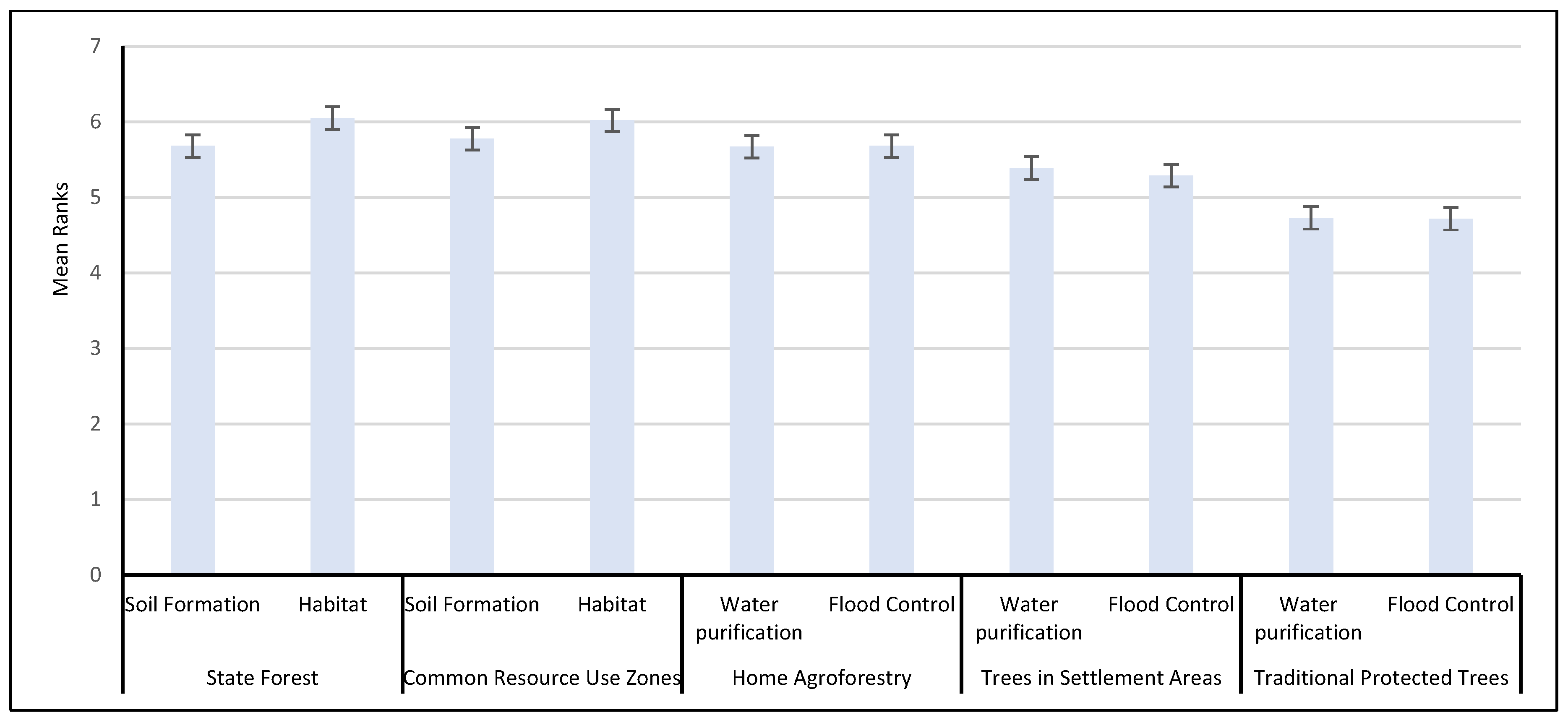 | Ecosystem Services | Vegetation Type | Mean Rank | Chi-Square | df | p-Value |