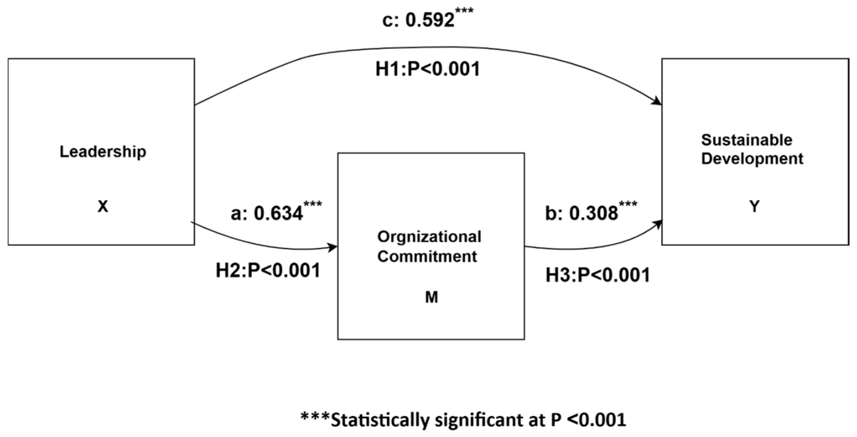| H4 | Commitment mediates Leadership → Sustainable Dev | Indirect effect = 0.195, CI [0.118, 0.283] | Yes |