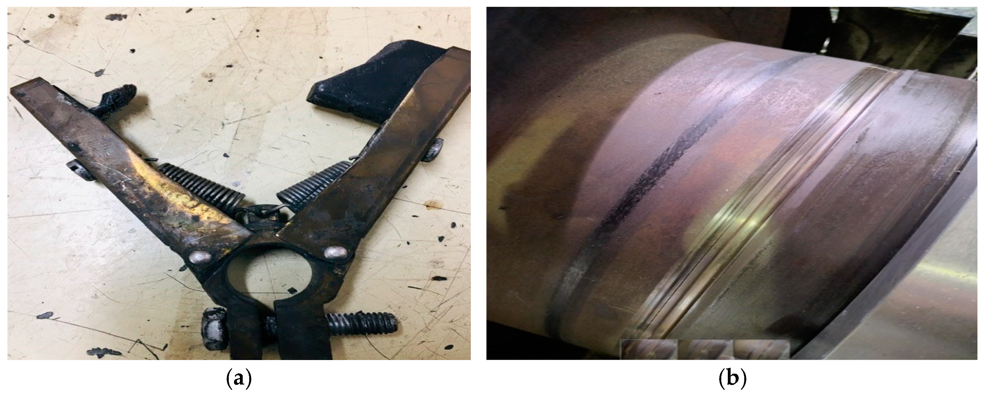 Figure 11b displays evidence of electrical arcing/pitting damage on a generator bearing, consistent with circulating currents passing through it during the fault. Once the brush cable was reconnected, normal grounding was restored, allowing comparative measurements between the faulty and healthy states.