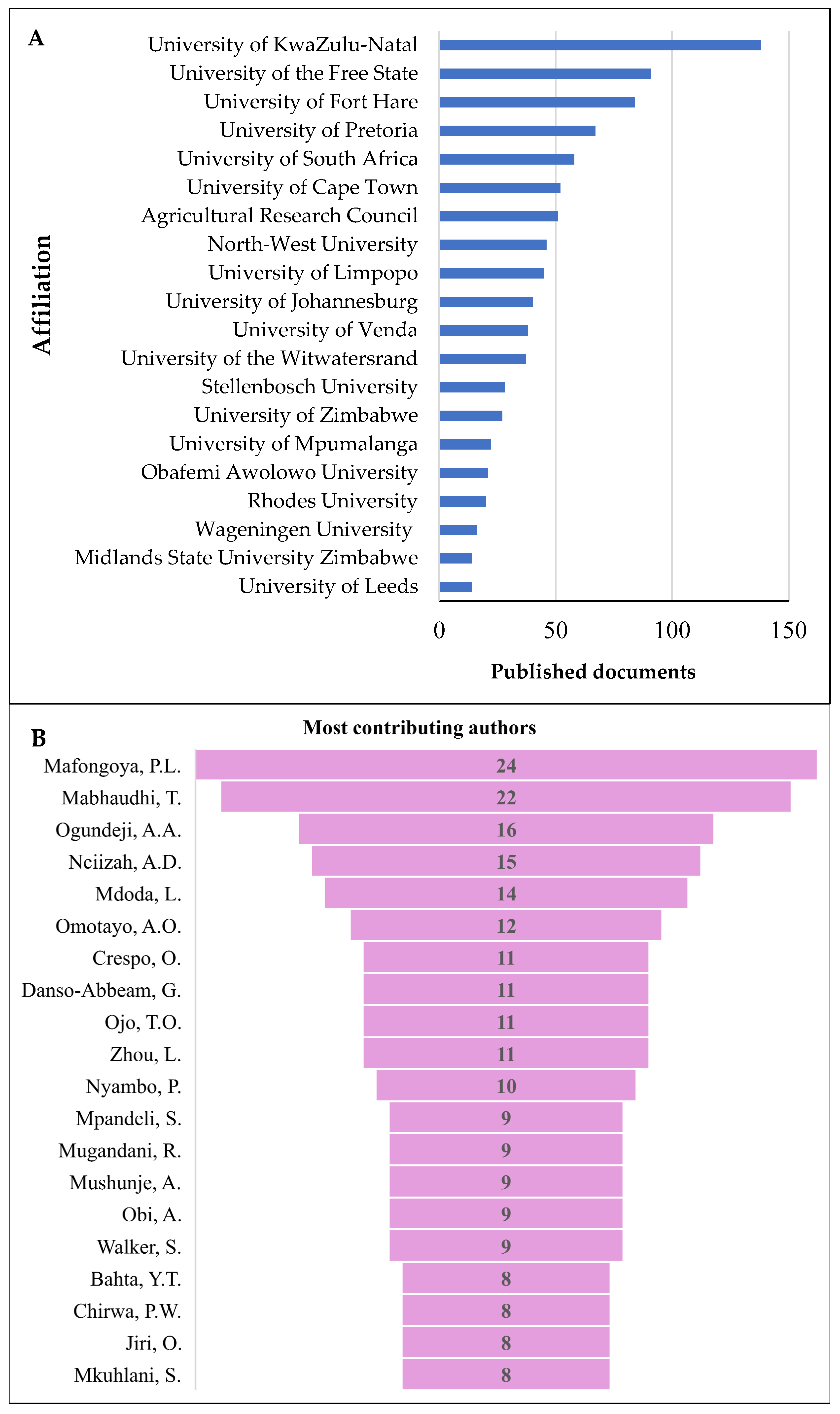 4.5. Affiliations, Contributing Authors and Geographic Distribution of Research on Climate Change, Smallholder Farming, and Sustainable Agricultural Interventions