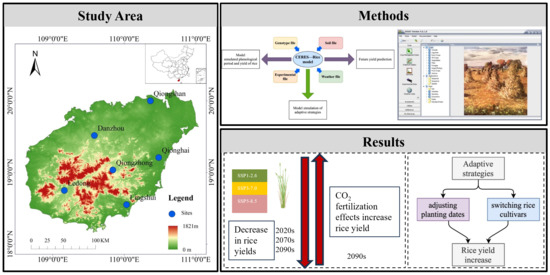 - Li, Y.; Wu, W.; Ge, Q.; Zhou, Y.; Xu, C. Simulating climate change impacts and adaptive measures for rice cultivation in Hunan province, China. J. Appl. Meteorol. Climatol. 2016, 55, 1359–1376. [Google Scholar] [CrossRef]