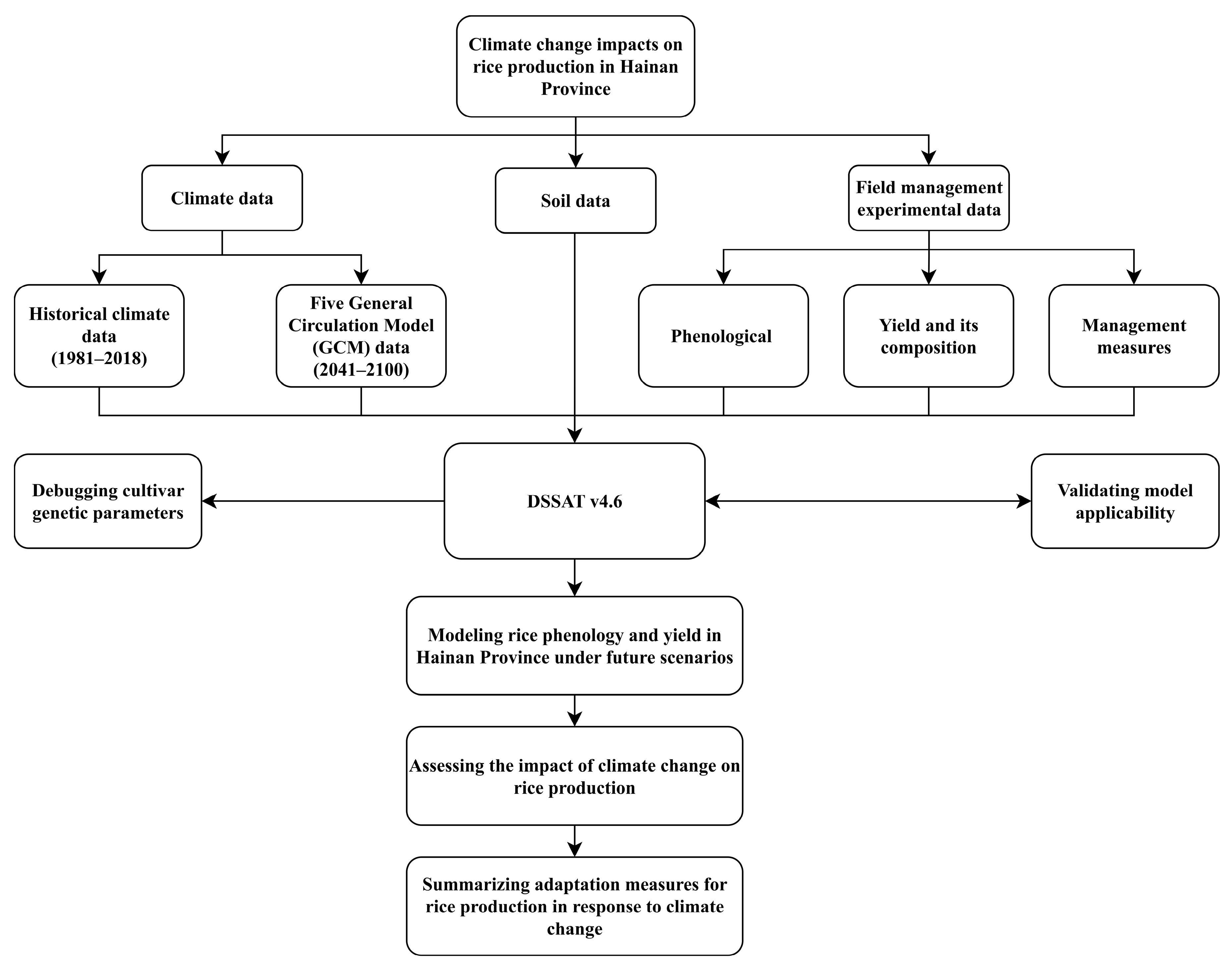 Yang R, Guo Y, Nie J, Zhou W, Ma R, Yang B, Shi J, Geng J, Wu W, Liu J, et al. Modeling Impacts of Climate Change and Adaptation Measures on Rice Growth in Hainan, China. Sustainability. 2026; 18(1):115. https://doi.org/10.3390/su18010115