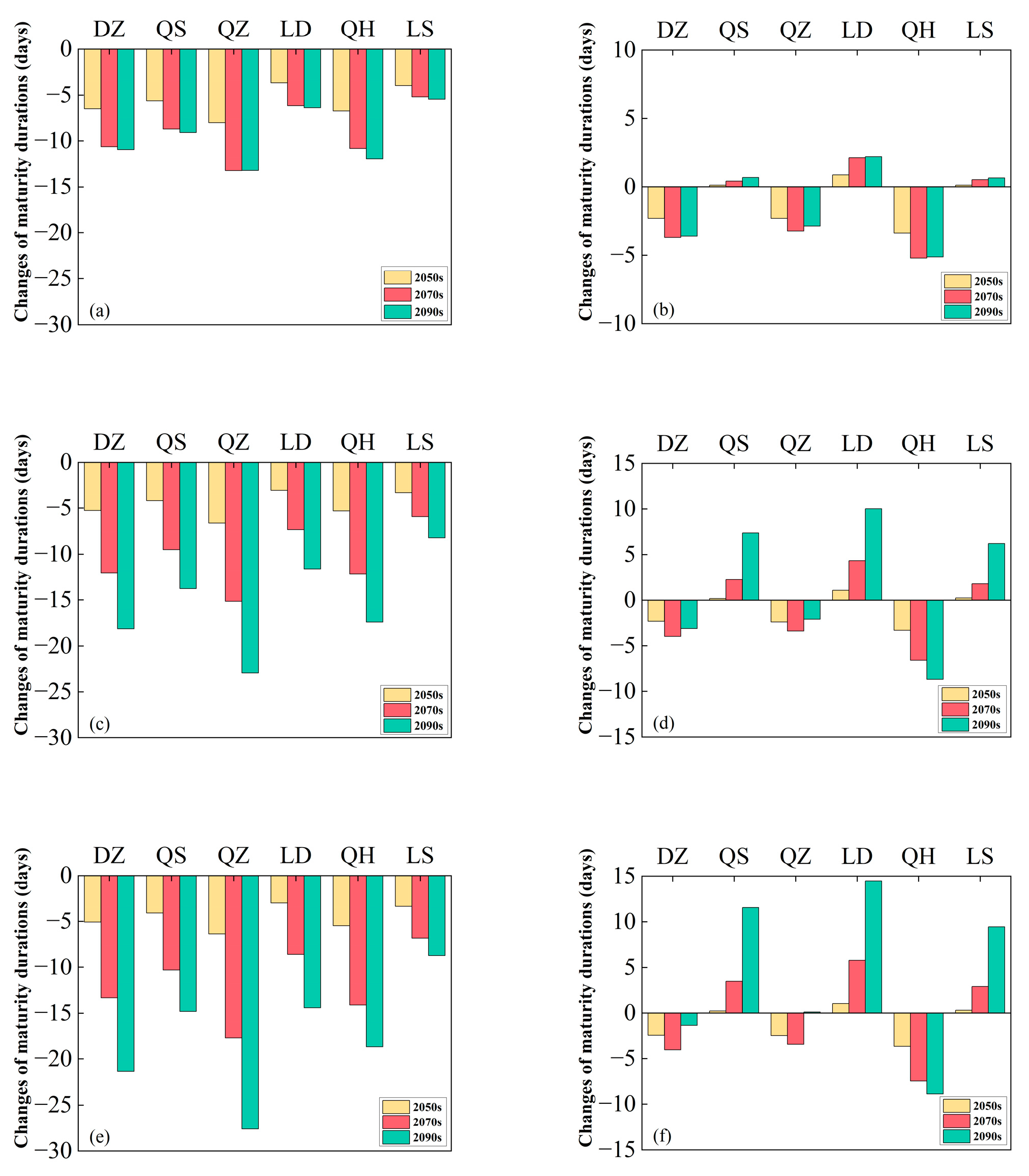 3.3. Impacts of Climate Change on Rice Phenology