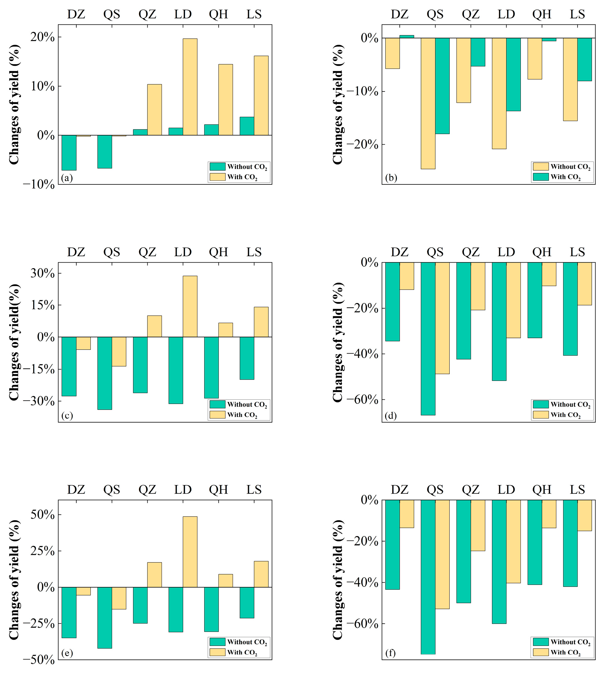 3.5. Impacts of CO2 Fertilization Effect on Rice Yield