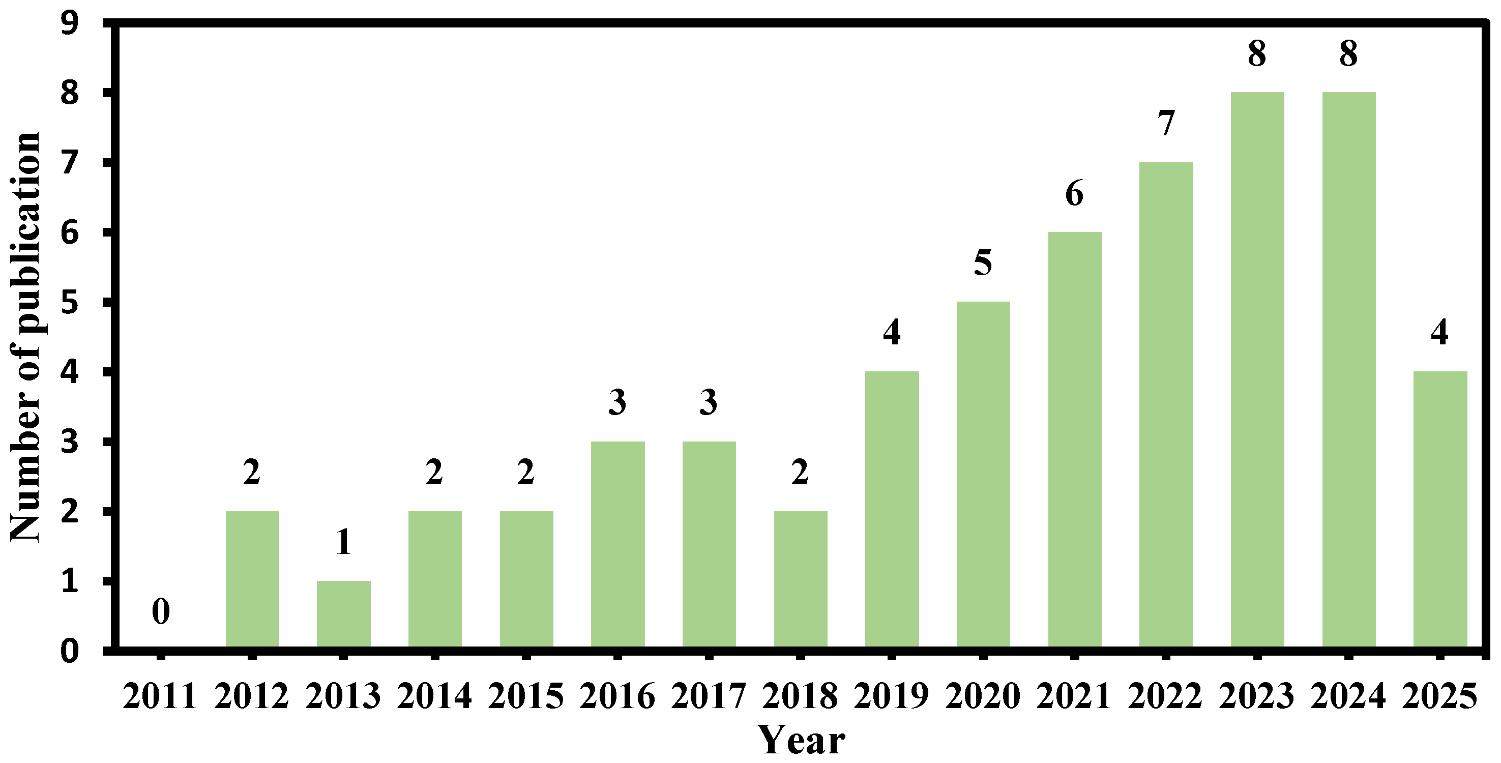 | Application | “Asphalt,” “bitumen,” “asphalt pavement,” “asphalt mixture,” “asphalt concrete,” “hot mix asphalt,” “warm mix asphalt,” “binder modification,” “cold mix asphalt,” “asphalt modifier” |