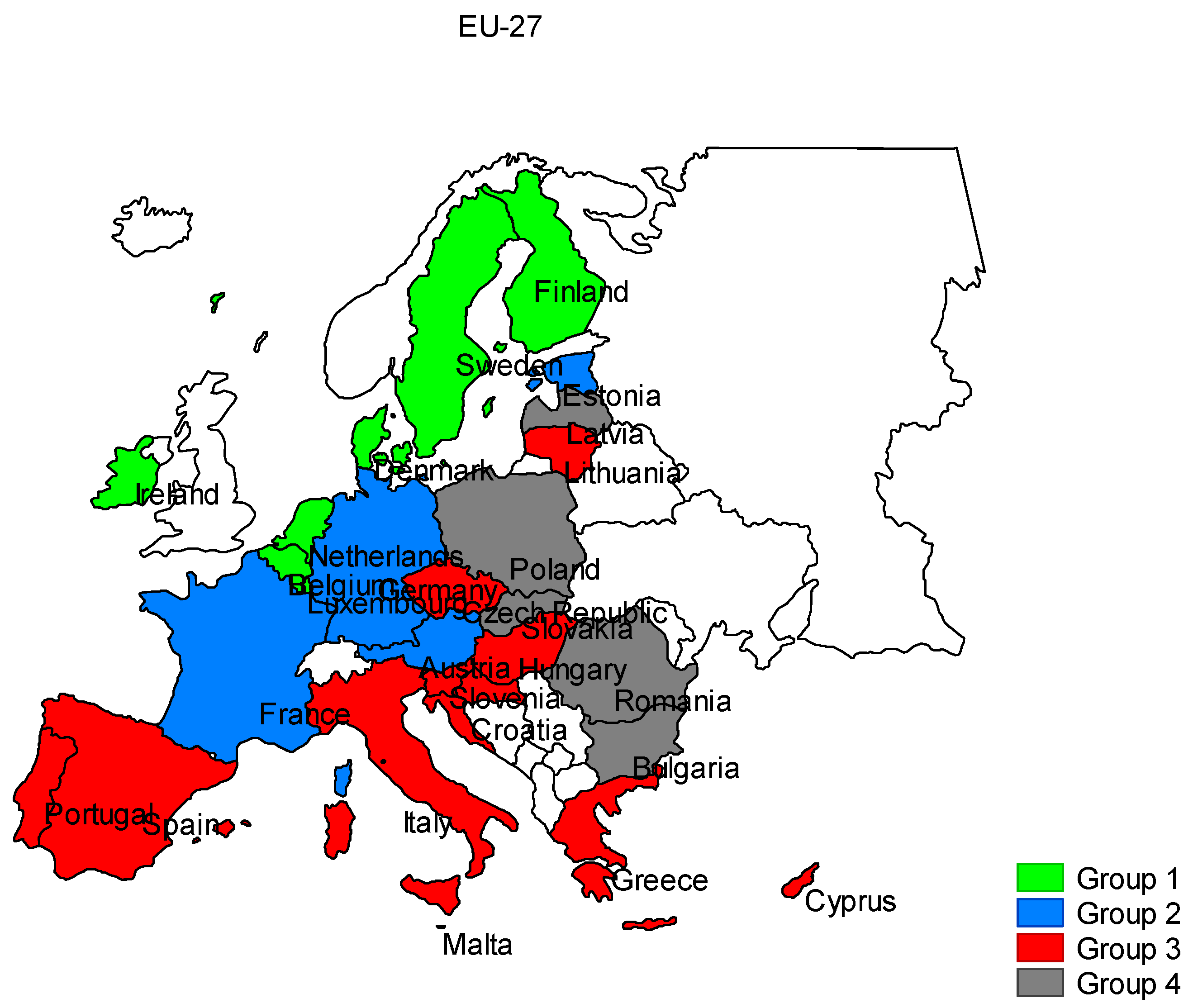 - How can the EU-27 countries be classified into groups of countries similar in terms of innovation and sustainable development?