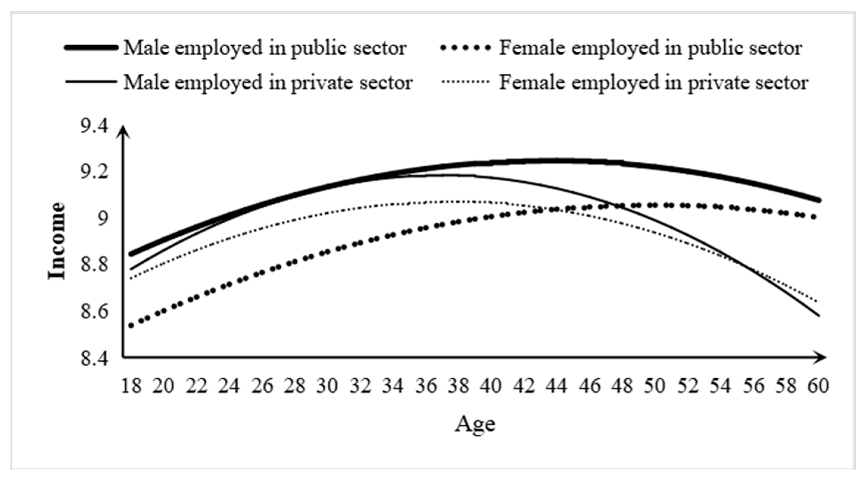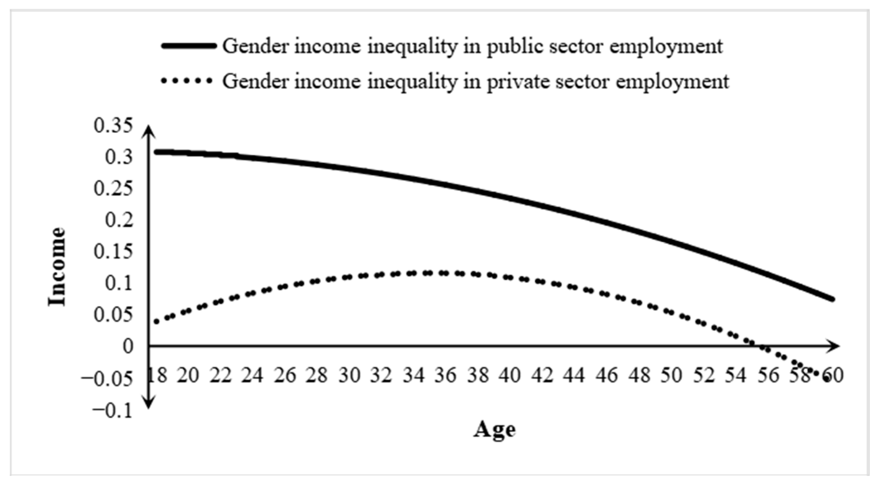 5.2. Age Effects of Gender Income Inequality Across Public and Private Sector Employment