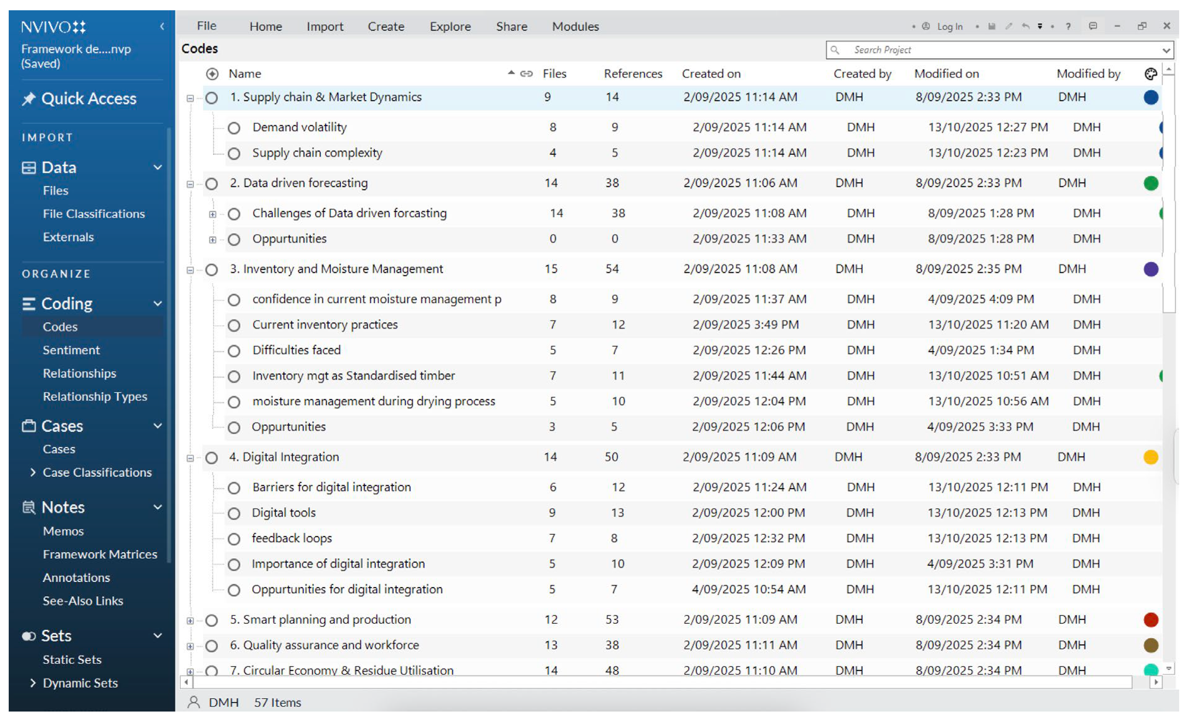 Thematic analysis was conducted using framework analysis, supported by NVivo 14 software, to systematically identify recurring themes, patterns, and relationships in the data [13]. Framework analysis is particularly suited to applied industry and policy research because it accommodates both deductive coding, guided by the research questions and previous literature study, and inductive coding, which emerges directly from participant accounts [14,15]. This balance between structure and flexibility enabled the study to capture pre-identified areas of interest while remaining open to novel issues raised by practitioners.