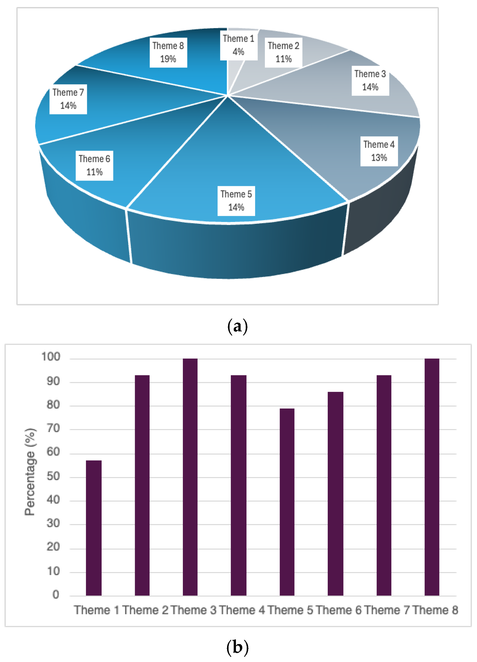 Figure 5. Distribution of themes by coding coverage (a) and participant occurrence (b) as per the NVivo Analysis.