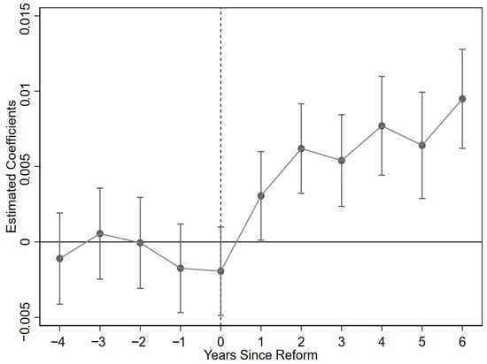 Here, is a series of dummy variables, where k indicates the number of years relative to the policy implementation (k = 0 for the implementation year). We set the period more than four years before the reform as the baseline group. The coefficients the dynamic effects of the reform over time.